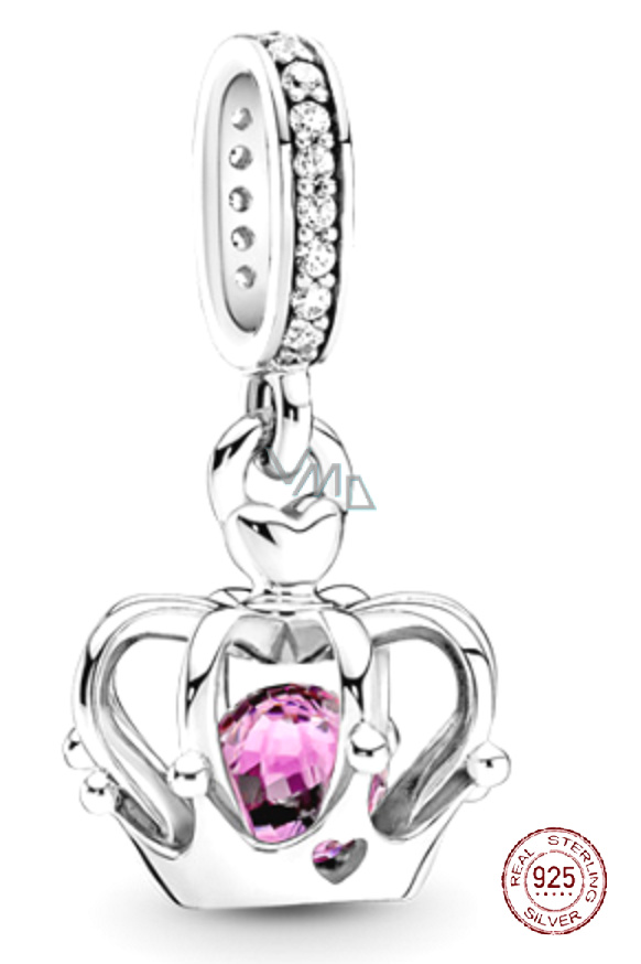 Dodejte svému vzhledu majestátní nádech s přívěskem koruny. Kouzlo, inspirované ozdobnými korunami, které nosí královské rodiny po celém světě, obsahuje volný, uměle vyrobený růžový krystal zapouzdřený v koruně ze sterlingového stříbra a akcentovaný řadou jiskřivých dlažeb na kauci. Přidejte tento přívěsek jako slávu na svůj náramek pro zvláštní okamžik každý den a upravte jej s dalšími kousky stříbra.