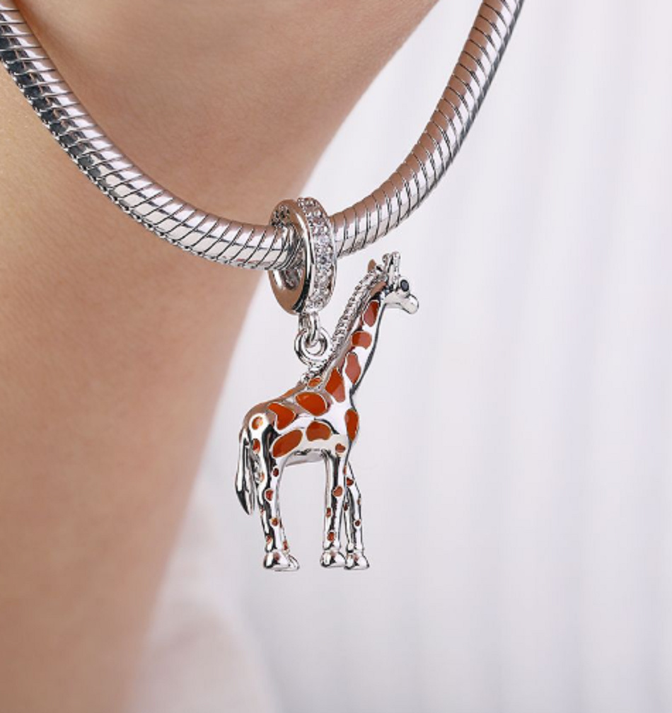 Roztomilý Žirafí přívěsek je pro všechny milovníky zvířat. Tento doplněk je vyroben ze sterlingového stříbra a opatřen smaltovanou barvou s jemnými a živými detaily. Prsten přívěsku je ozdoben bílým třpytivým zirkonovým drahokamem ve tvaru srdce. Lze jej nosit s náramkem nebo jako přívěsek na náhrdelník. Vhodné pro všechny hlavní značky náramků a náhrdelníků. S každým přívěskem vyprávěj svůj příběh a vytvoř si náramek, který odráží, kdo jsi. Tvůj styl. Tvůj náramek. Tvůj příběh.