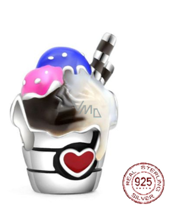 Charm Sterlingové stříbro 925 Zmrzlinový pohár, korálek na náramek, jídlo a pití