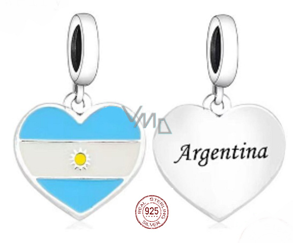 Charm Sterlingové stříbro 925 Argentina vlajka srdce - miluji Argentinu, přívěsek na náramek cestování