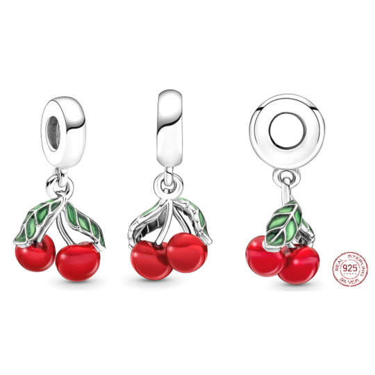 Charm Sterlingové stříbro 925 Asymetrické třešně, přívěsek na náramek, jídlo a pití