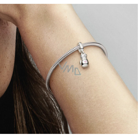 Přívěsek boxerské rukavice slouží jako připomínka toho, jak daleko se můžete dostat, pokud spojíte vášeň s oddaností. Ručně vyrobený ze sterlingového stříbra, má realistické prošívání po stranách, vyvýšené srdce na zavíracím pásku, ručně aplikované růžové smaltované srdce na horní straně a tkaničky na spodní straně. Noste jeho poselství „Síly“ s sebou do arény života.