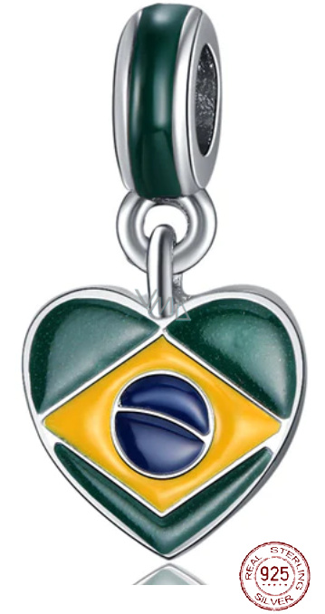 Charm Sterlingové stříbro 925 Brazilská vlajka srdce - miluji Brazílii, kávové zrno, přívěsek na náramek cestování