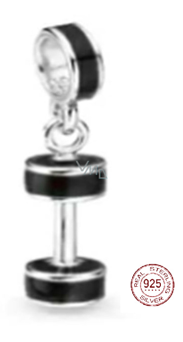 Charm Sterlingové stříbro 925 Černá činka, přívěsek na náramek sport