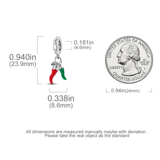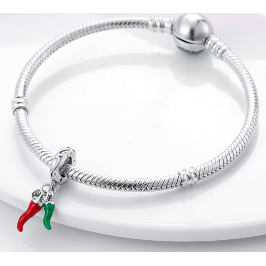 Charm Sterlingové stříbro 925 Chilli paprička - pro milovníky dobré kuchyně, 2v1 přívěsek na náramek, jídlo a pití