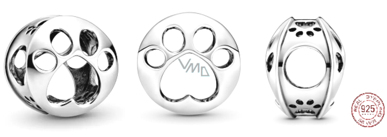 Charm Sterlingové stříbro 925 Děrovaná tlapka čtyřnohého miláčka, korálek na náramek mazlíček