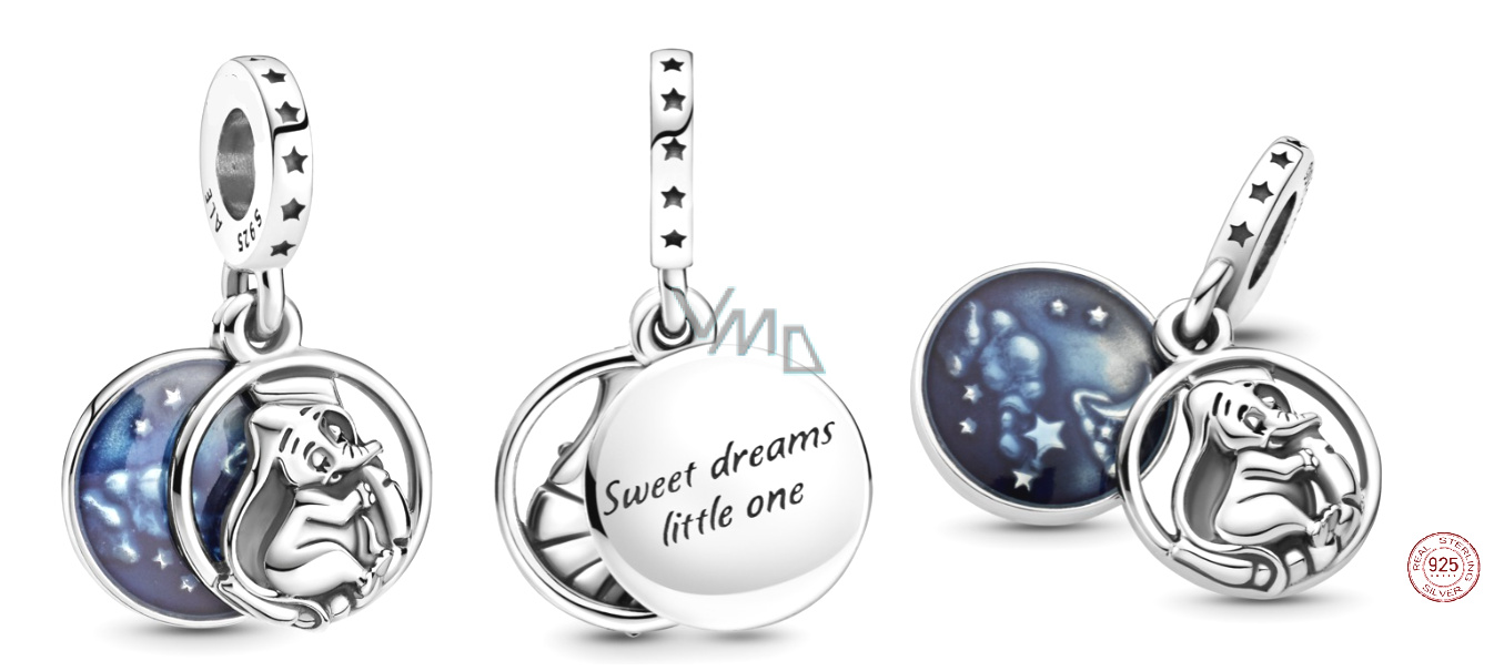 Charm Sterlingové stříbro 925 Disney Dumbo a jeho sladké sny, 2v1 přívěsek na náramek rodina