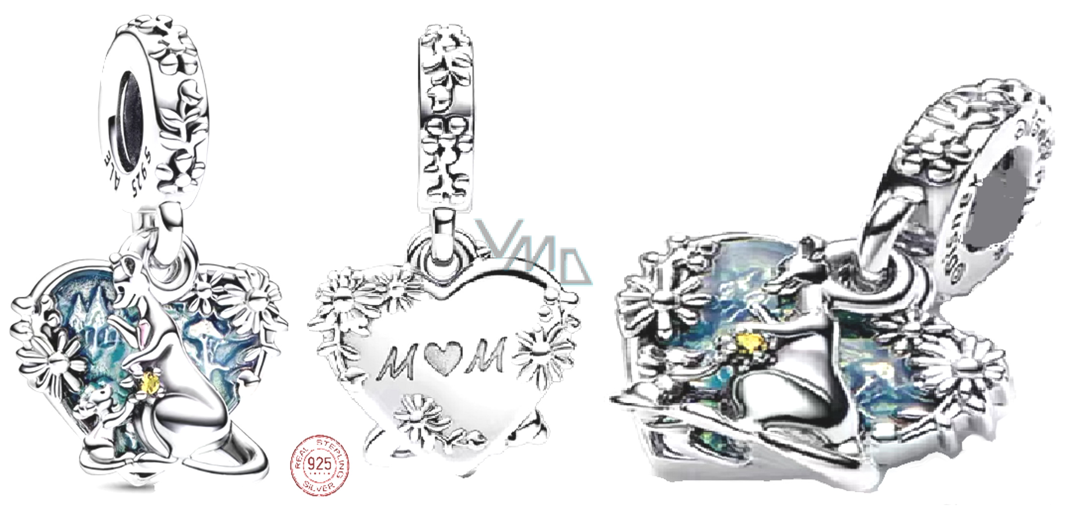 Charm Sterlingové stříbro 925 Disney Medvídek Pú, Klokanice + Klokánek máma, přívěsek na náramek rodina