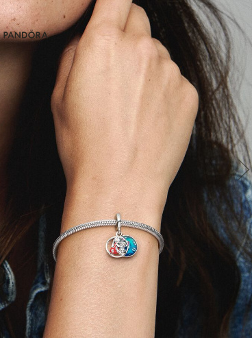 Charm Sterlingové stříbro 925 Disney Lilo & Stitch - rodina znamená, že nikdo nezůstane pozadu, 2v1 přívěsek na náramek rodina