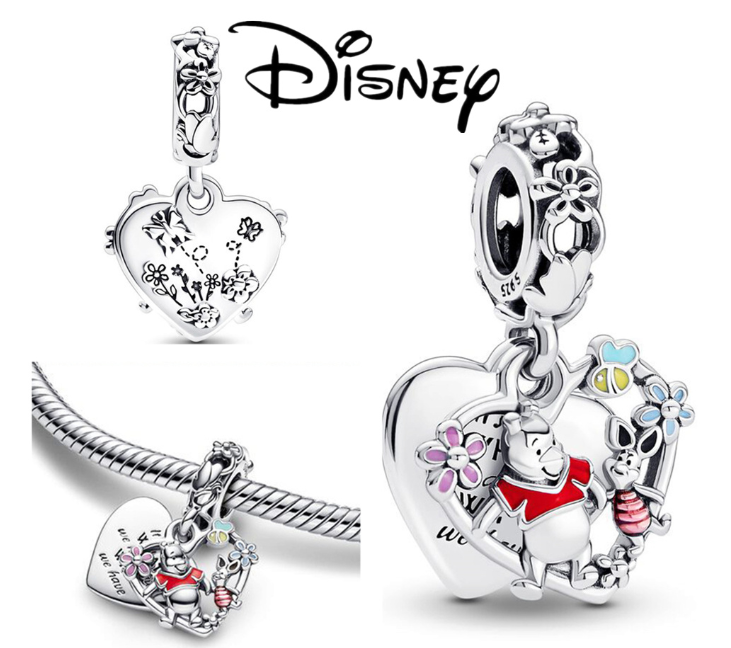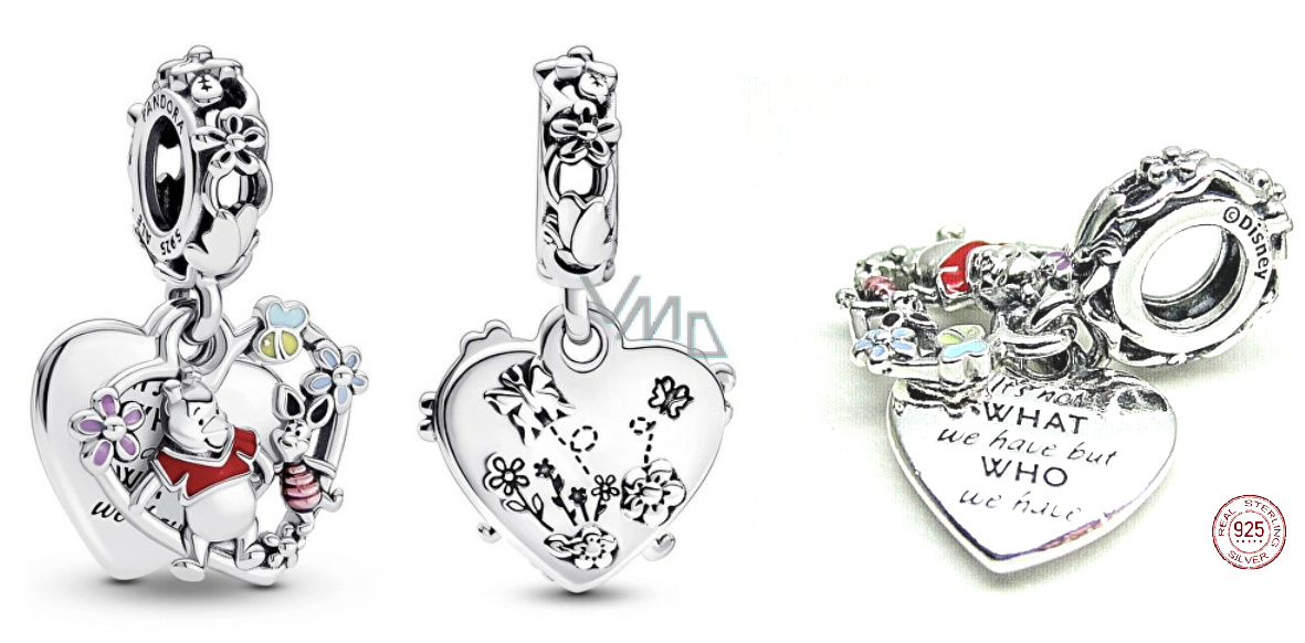Charm Sterlingové stříbro 925 Disney Medvídek Pú a Prasátko - Není to o tom co máme, ale koho máme, 2v1 přívěsek srdce na náramek, film