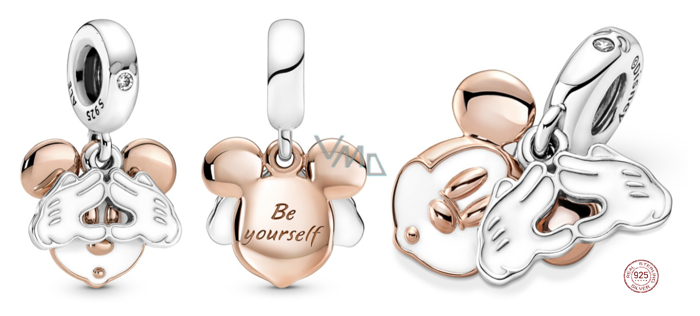 Charm Sterlingové stříbro 925 Disney Mickey Mouse - buď sám sebou, 2v1 přívěsek na náramek, film