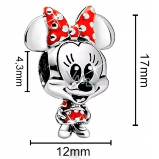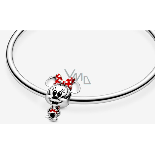 Charm Sterlingové stříbro 925 Disney Minnie Mouse myška s puntíkovanými šaty a mašlí, korálek na náramek, film