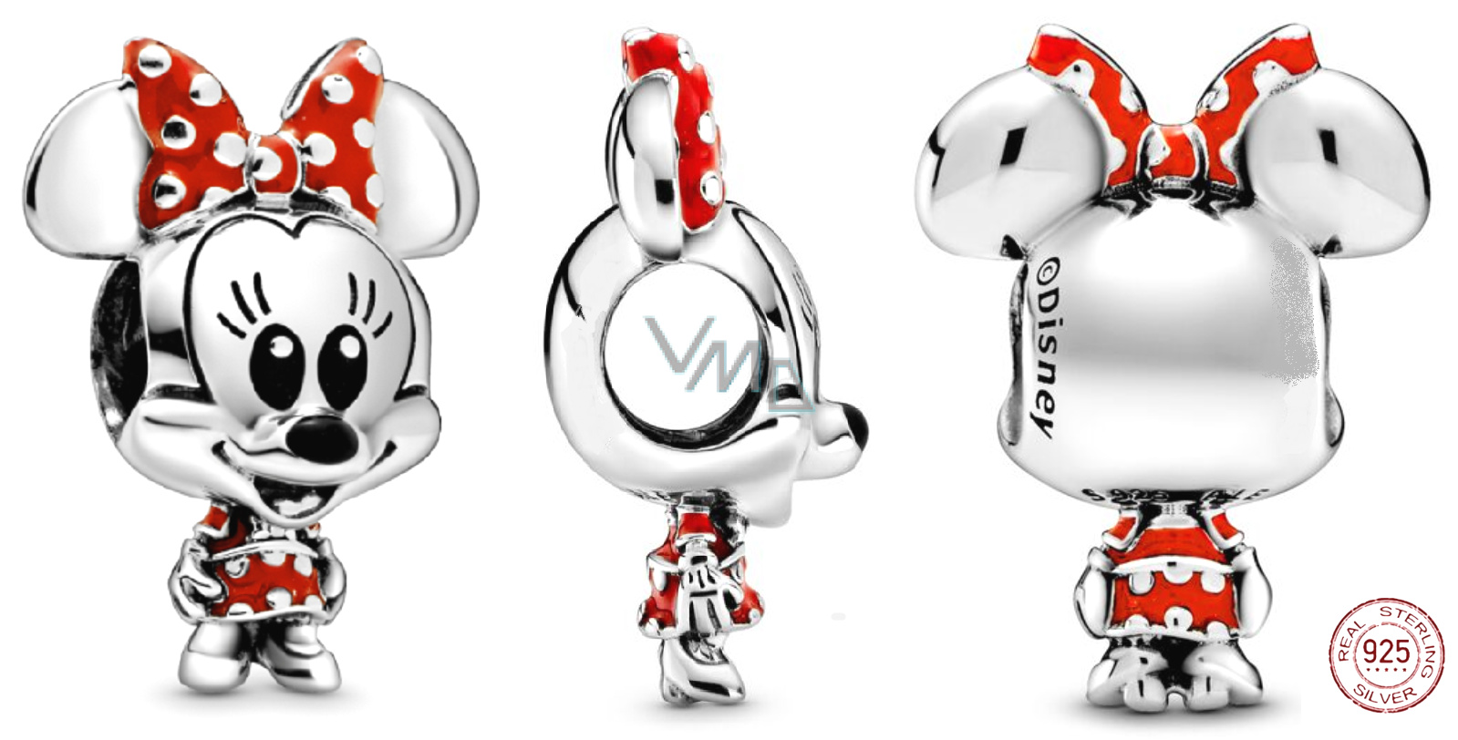 Charm Sterlingové stříbro 925 Disney Minnie Mouse myška s puntíkovanými šaty a mašlí, korálek na náramek, film