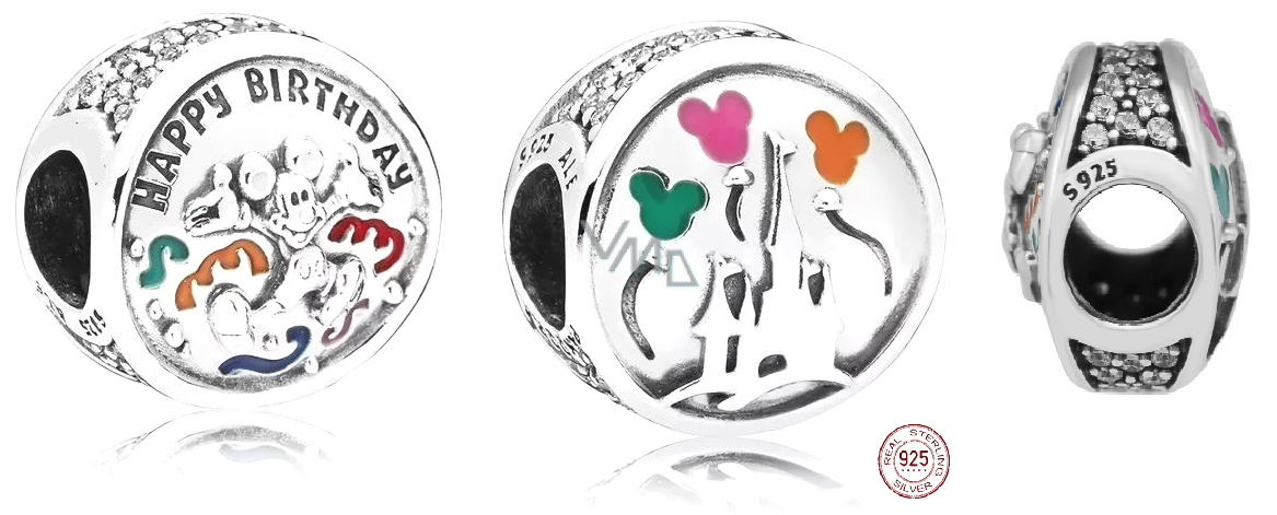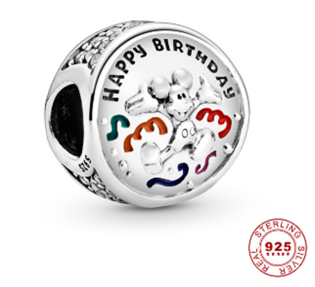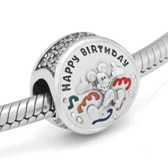 Charm Sterlingové stříbro 925 Disney Narozeniny - Všechno nejlepší k narozeninám, korálek na náramek narozeniny
