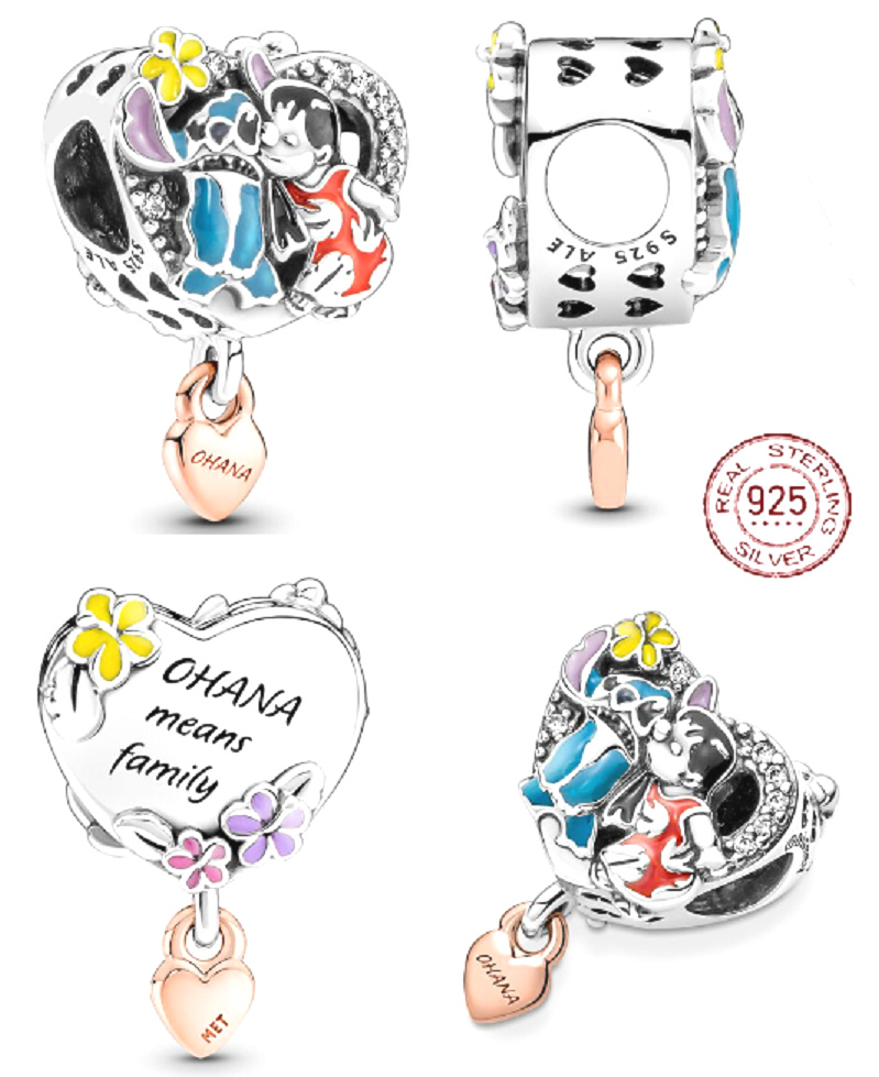 Charm Sterlingové stříbro 925 Disney Lilo & Stitch - Ohana, rodina, korálek na náramek, film