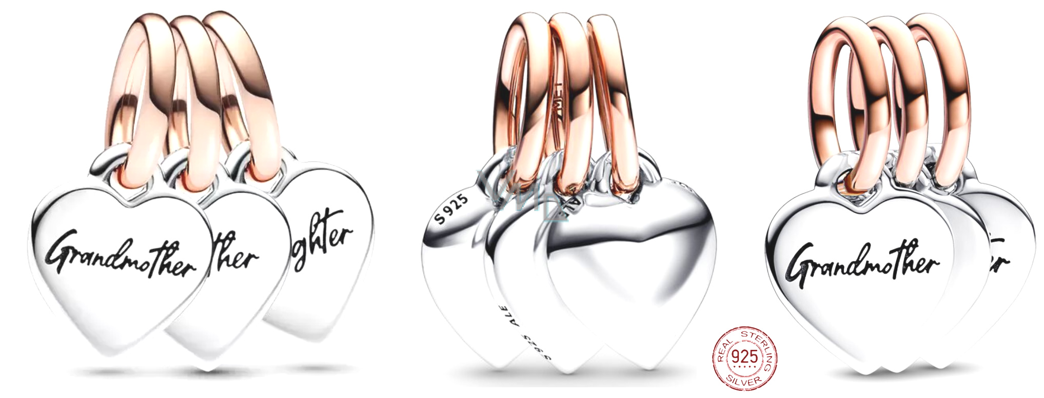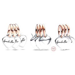 Charm Sterlingové stříbro 925 Dělitelné kouzlo babička, máma a dcera - rodina generace srdcí 3v1, přívěsek na náramek