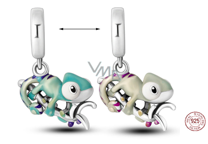 Charm Sterlingové stříbro 925 Chameleon, mění barvu na teplo, přívěsek na náramek zvíře