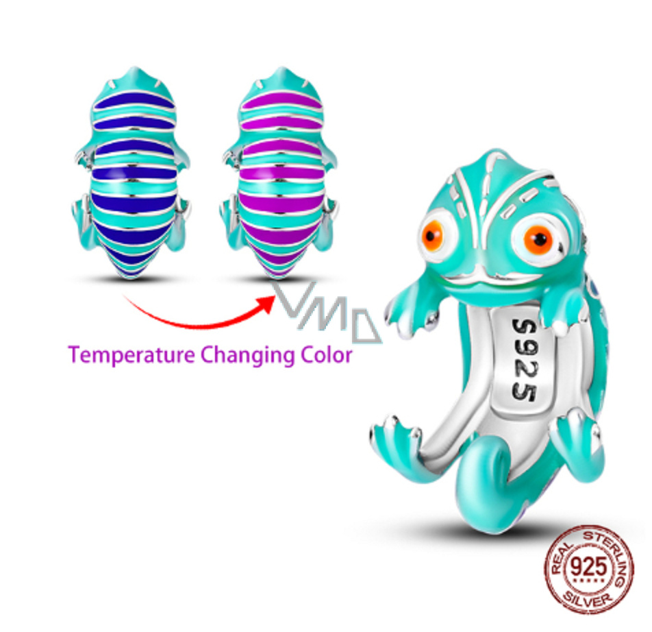 Charm Sterlingové stříbro 925 Chameleon, mění barvu na teplo, korálek na náramek zvíře