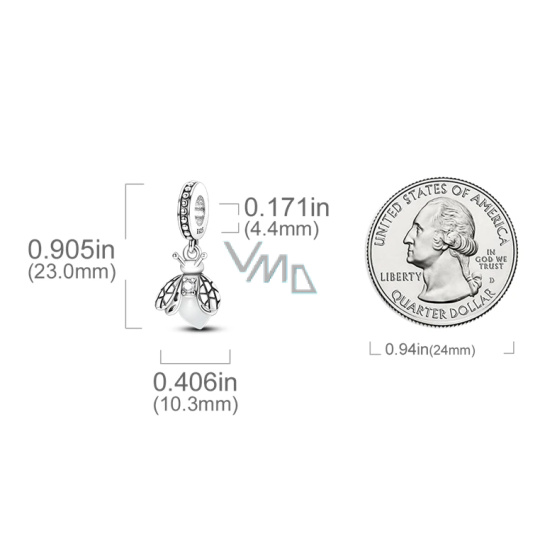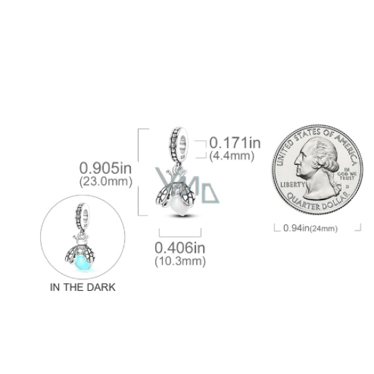 Charm Sterlingové stříbro 925 Světluška zářící ve tmě luminozní přívěsek na náramek symbol
