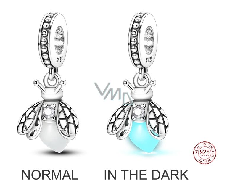 Charm Sterlingové stříbro 925 Světluška zářící ve tmě luminozní přívěsek na náramek symbol