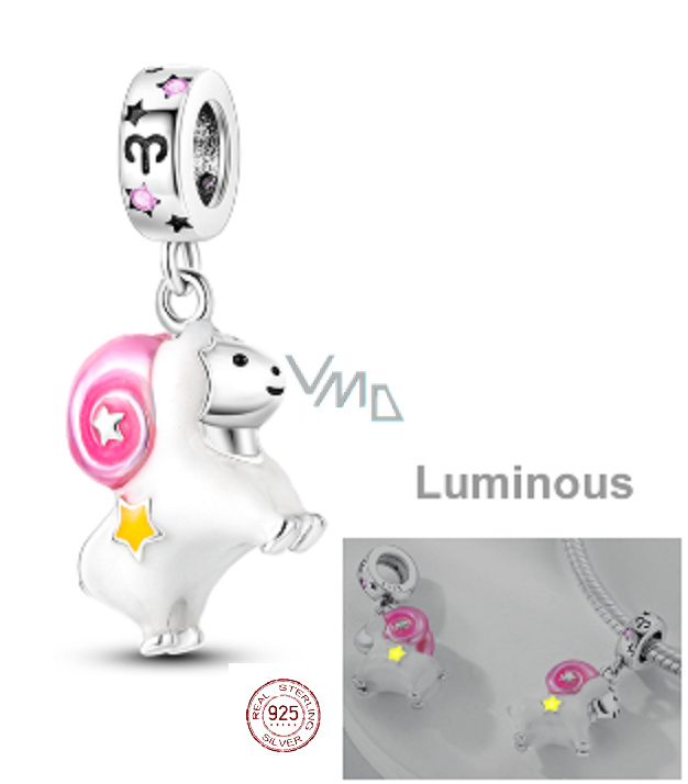Charm Sterlingové stříbro 925 Znamení zvěrokruhu Beran, zářící ve tmě luminozní přívěsek na náramek