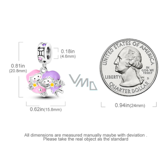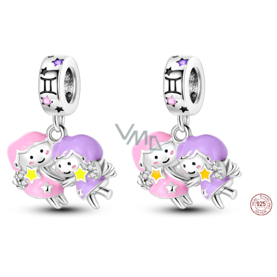Charm Sterlingové stříbro 925 Znamení zvěrokruhu Blíženci, zářící ve tmě luminozní přívěsek na náramek