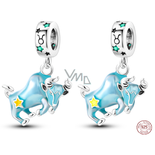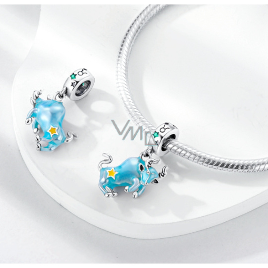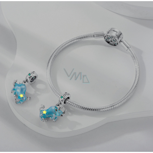 Charm Sterlingové stříbro 925 Znamení zvěrokruhu Býk, zářící ve tmě luminozní přívěsek na náramek