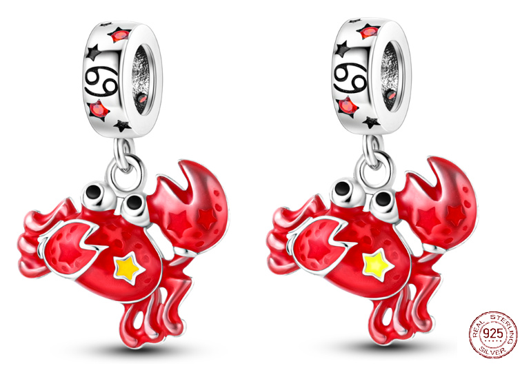 Charm Sterlingové stříbro 925 Znamení zvěrokruhu Rak, zářící ve tmě luminozní přívěsek na náramek