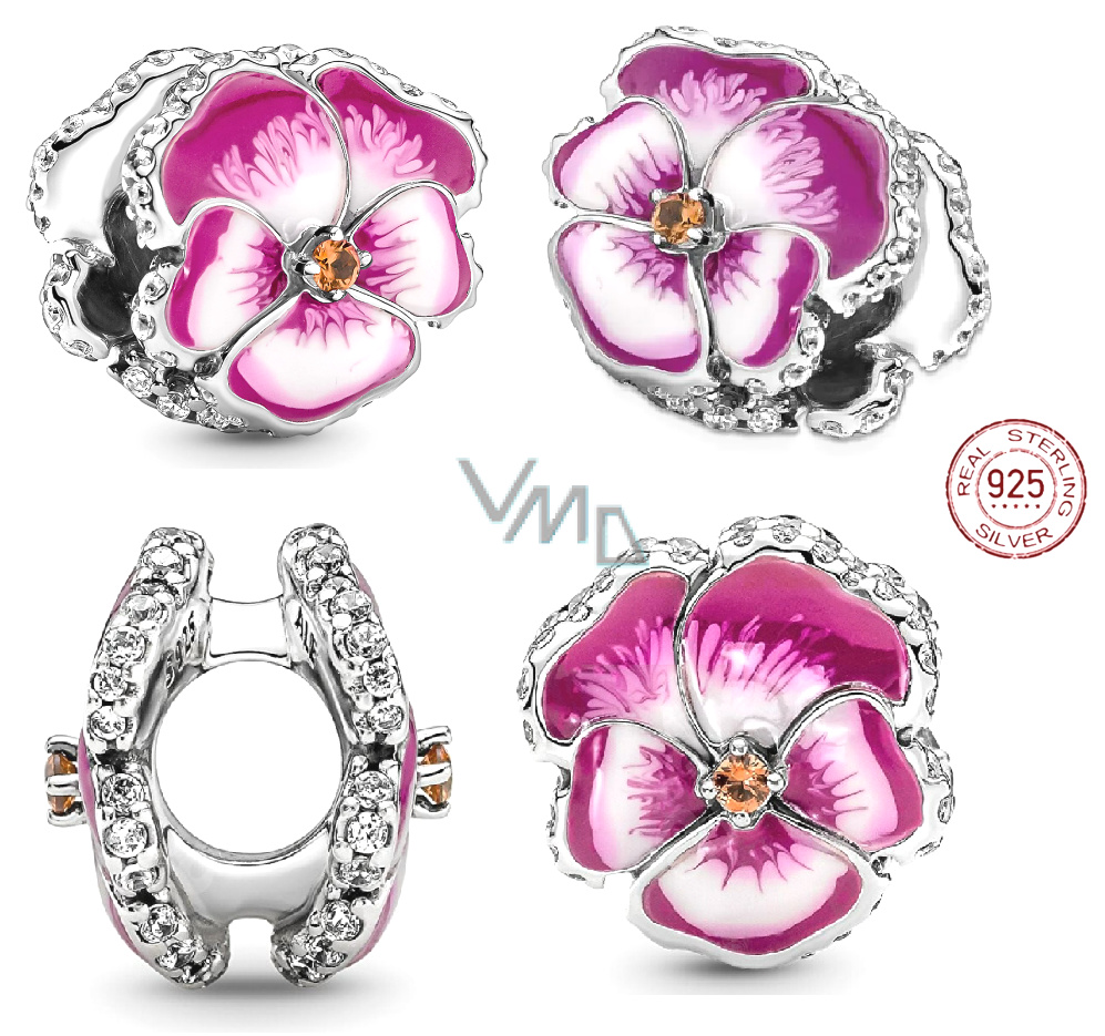 Charm Sterlingové stříbro 925 Růžová maceška, korálek na náramek květina