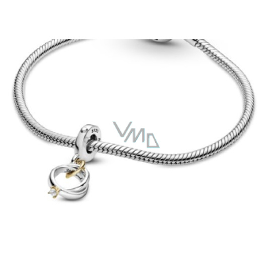 Charm Sterlingové stříbro 925 Snubní prsteny - šťastná láska, 2v1 přívěsek na náramek láska