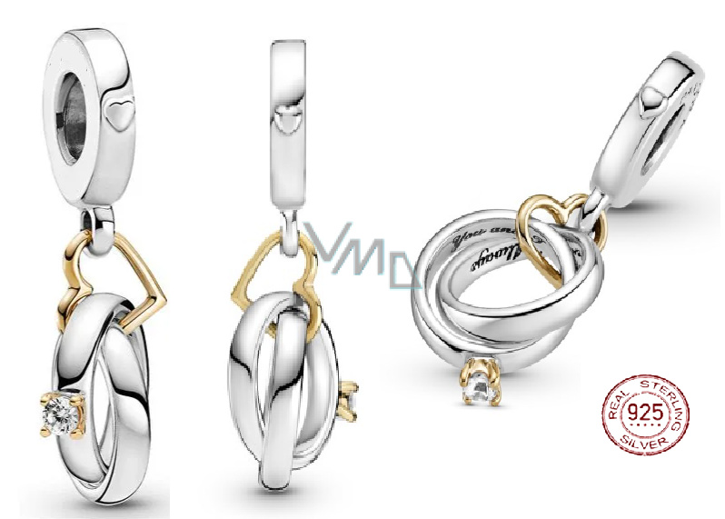 Charm Sterlingové stříbro 925 Snubní prsteny - šťastná láska, 2v1 přívěsek na náramek láska