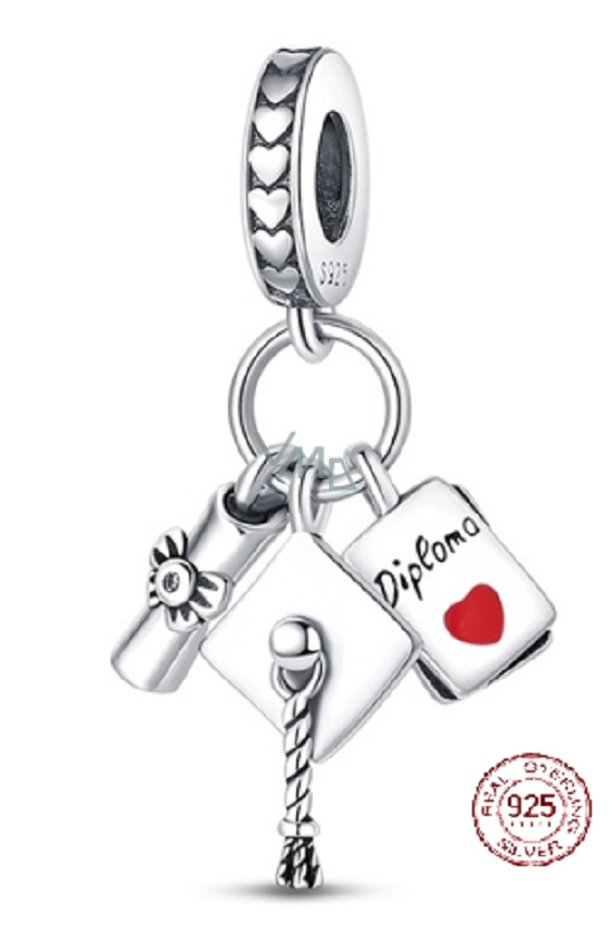 Charm Sterlingové stříbro 925 Gradace - čepice, diplom pergamen, 3v1 Absolvent přívěsek na náramek
