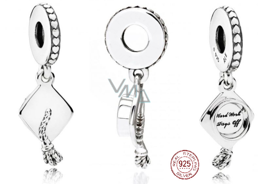 Charm Sterlingové stříbro 925 Gradace - maturitní čepice - Tvrdá práce se vyplácí, Absolvent přívěsek na náramek