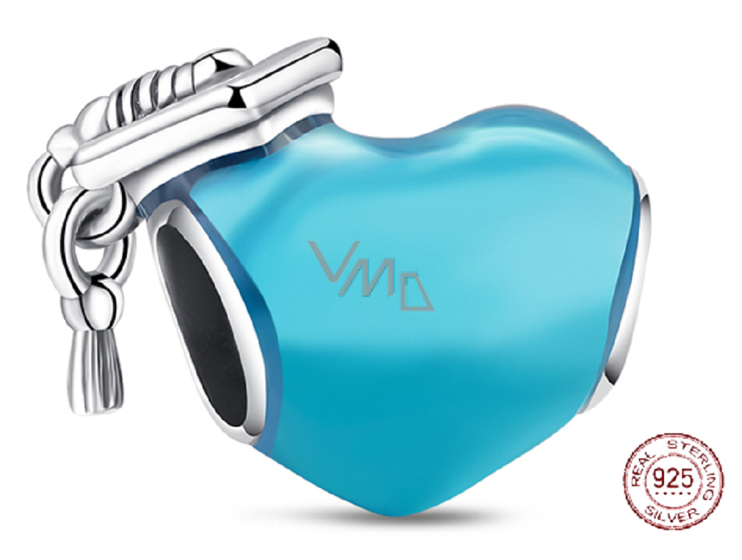 Charm Sterlingové stříbro 925 Gradace - modré promoční srdce, Absolvent, korálek na náramek gradace