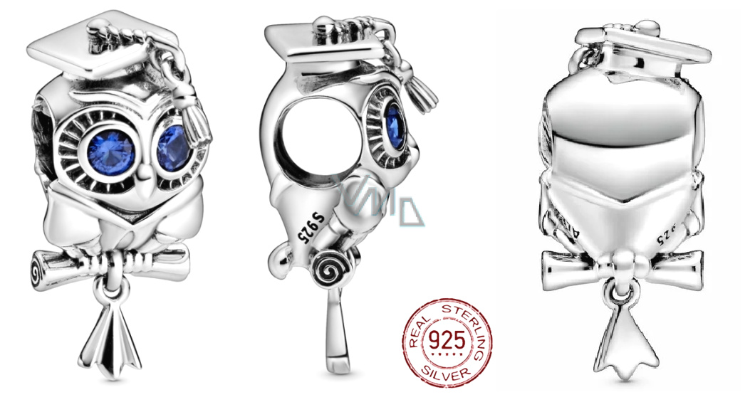 Charm Sterlingové stříbro 925 Gradace - Moudrá sova, Absolvent korálek na náramek gradace