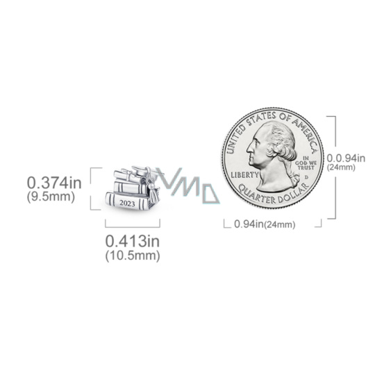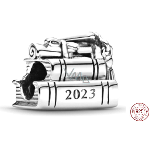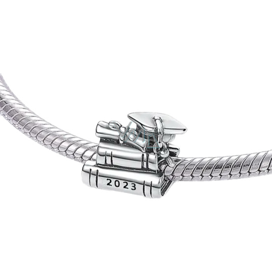 Charm Sterlingové stříbro 925 Gradace - Promoční čepice, kniha a svitek 2023, Absolvent korálek na náramek
