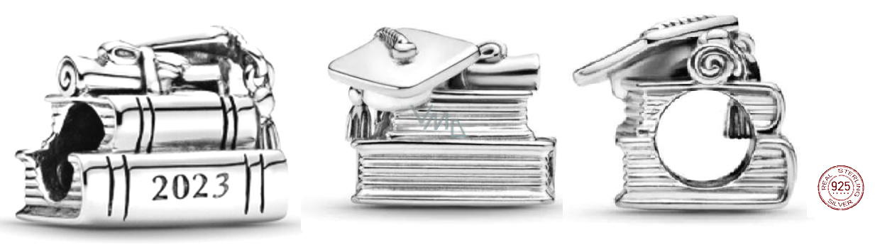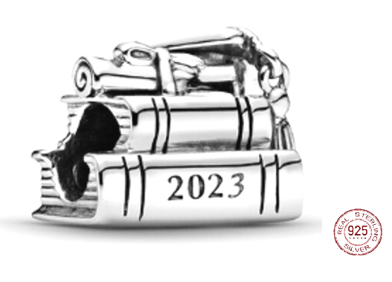 Charm Sterlingové stříbro 925 Gradace - Promoční čepice, kniha a svitek 2023, Absolvent korálek na náramek