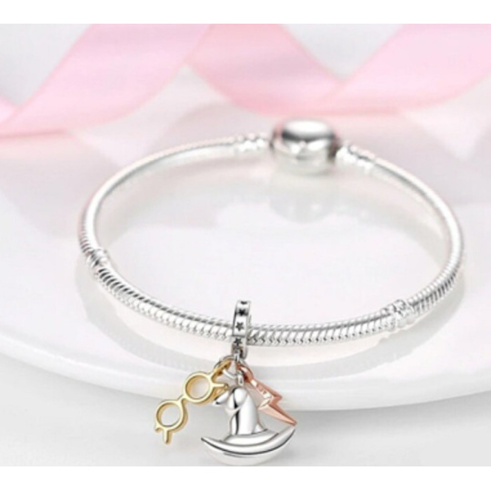 Charm Sterlingové stříbro 925 Harry Potter - Klobouk, brýle, jizva, 3v1 přívěsek na náramek, film