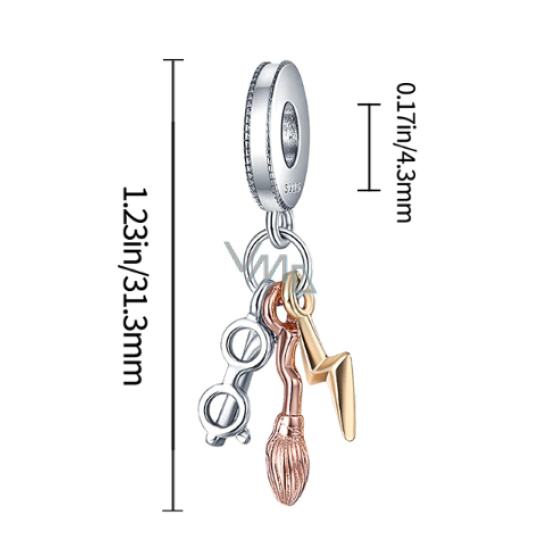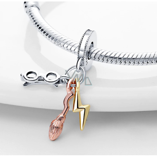 Charm Sterlingové stříbro 925 Harry Potter - Brýle, Nimbus 2000 a blesk, 3v1 přívěsek na náramek, film
