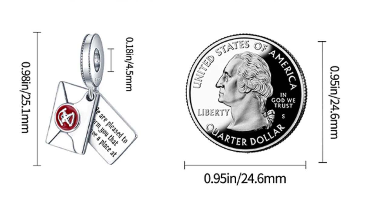 Charm Sterlingové stříbro 925 Harry Potter - Dopis o přijetí do Bradavic, 2v1 přívěsek na náramek, film
