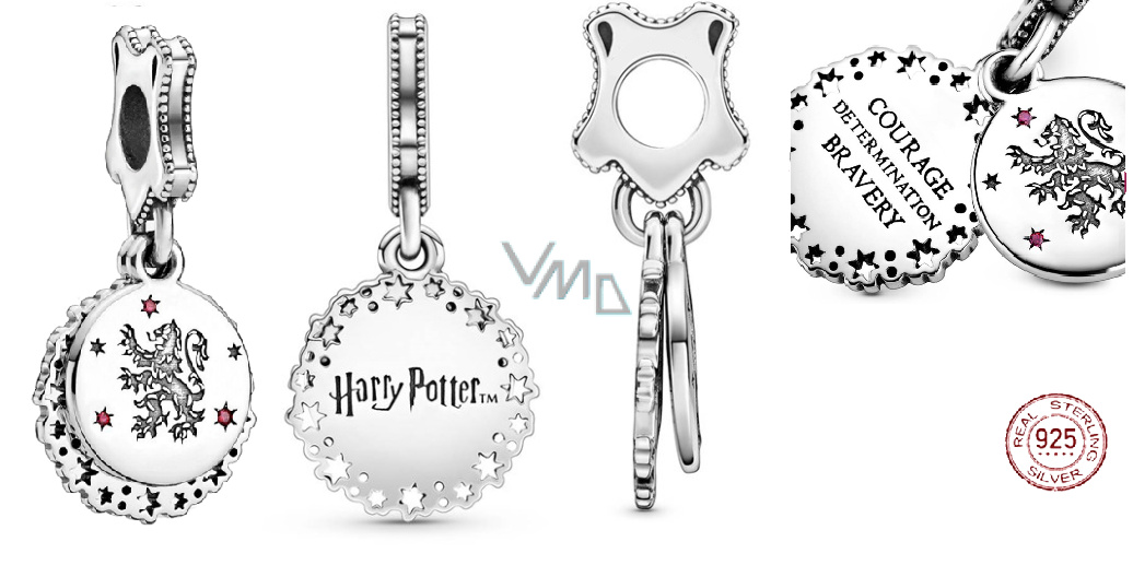 Charm Sterlingové stříbro 925 Harry Potter - Nebelvír + zirkon, 2v1 přívěsek na náramek, film