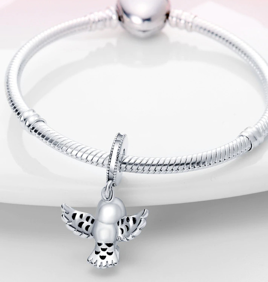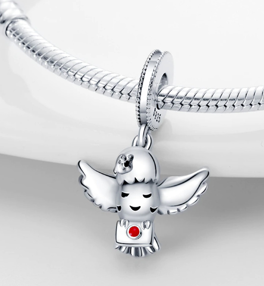 Charm Sterlingové stříbro 925 Harry Potter - Sova Hedvika s dopisem, přívěsek na náramek film