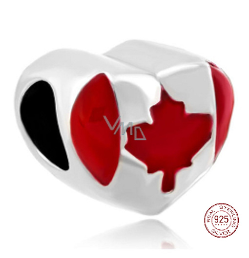 Charm Sterlingové stříbro 925 Kanadská vlajka srdce - miluji Kanadu, korálek na náramek cestování