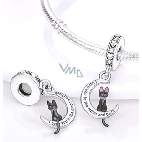 Charm Sterlingové stříbro 925 Kočka měsíc Miluji tě, přívěsek na náramek mazlíček
