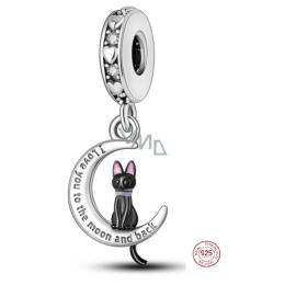 Charm Sterlingové stříbro 925 Kočka měsíc Miluji tě, přívěsek na náramek mazlíček