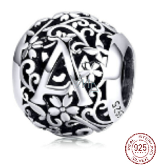 Charm Sterlingové stříbro 925 Kouzelná abeceda písmeno A s květinami, korálek na náramek