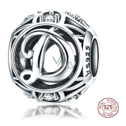Charm Sterlingové stříbro 925 Kouzelná abeceda písmeno D s květinami korálek na náramek