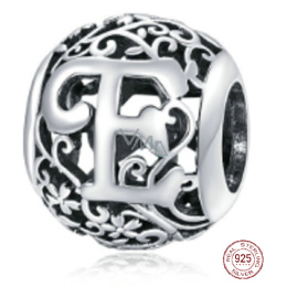 Charm Sterlingové stříbro 925 Kouzelná abeceda písmeno E s květinami, korálek na náramek