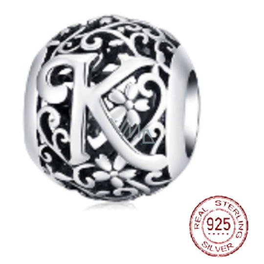 Charm Sterlingové stříbro 925 Kouzelná abeceda písmeno K s květinami, korálek na náramek