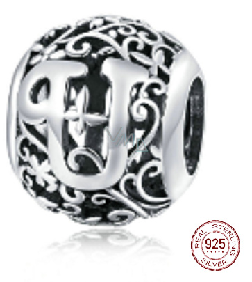 Charm Sterlingové stříbro 925 Kouzelná abeceda písmeno U s květinami, korálek na náramek